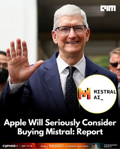 tfm@europe.pubMEnglish · 6 months agoApple Eyes Potential Acquisition of French AI Startup Mistral AIplus-squarewww.archyde.comexternal-linkmessage-square4linkfedilinkarrow-up110arrow-down12