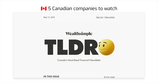arrow-up11arrow-down1external-linkWealthSimple TLDR Newsletter - Week of May 12 2025 - "🇨🇦 5 Canadian companies to watch"plus-squaretldr-archive.wealthsimple.comOtter Raft@lemmy.caEnglish · 8 months agomessage-square0linkfedilink