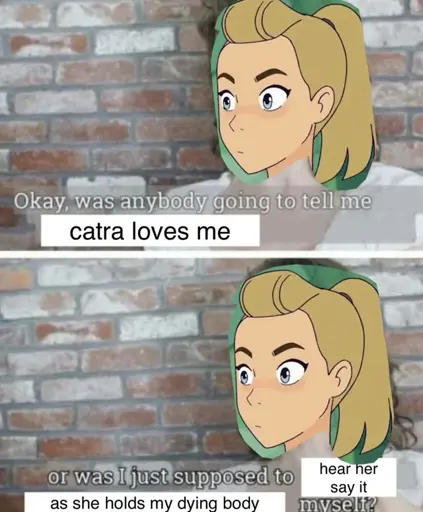 TotallynotJessica@lemmy.blahaj.zoneEnglish · 10 天前posting she-ra adjacent memes weekly to sustain moral: 3 lemmy.blahaj.zoneimagemessage-square0linkfedilinkarrow-up142arrow-down10