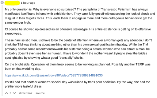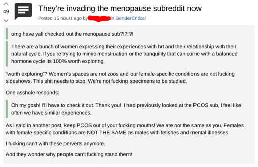 arrow-up17arrow-down1imageTERF knows why people transitionplus-squaresh.itjust.workspendant@sh.itjust.worksM · 7 months agomessage-square2linkfedilink