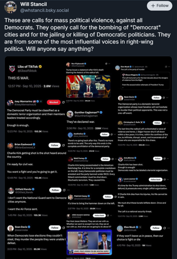 arrow-up1808arrow-down1imageCollage of Right Wingers calling for violence post-Kirk shootinglemmy.worldpopjam@lemmy.world to Bluesky@lemmy.world · 5 months agomessage-square201linkfedilink