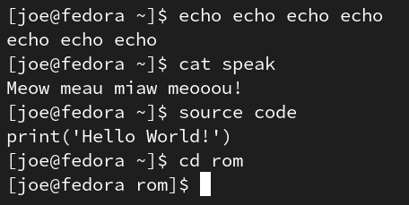 [joe@fedora ~]$ cd rom