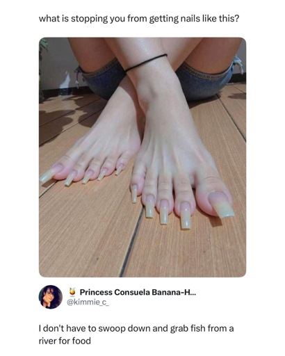 To be fair, the nails in the pic are clearly taken care of. They’re horrible, but they took effort to get like this.