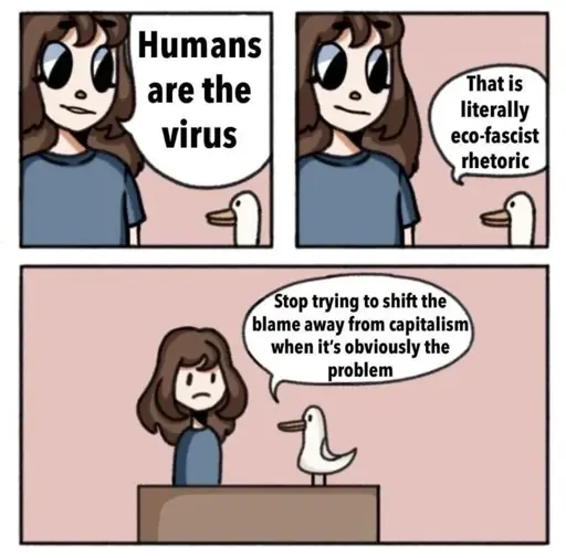 People are still saying this shit in here in the comments. We also saw it said a fuckton during Covid. It’s literally one of the most cliche and common eco-fash talking points.