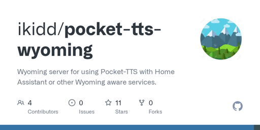 Pocket-TTS seems to be a TTS server that returns audio much faster locally than Piper, so I built a container that enables it via Wyoming protocol and zeroconf to be available in Home Assistant.