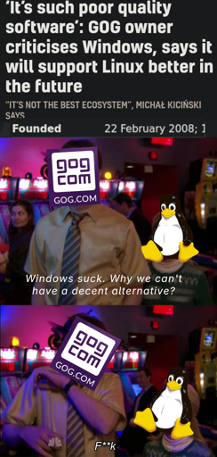 minus-squaredreadbeef@lemmy.dbzer0.comlinkfedilinkEnglisharrow-up57·7 days agothe guy bought back gog and is pushing linux? Consider me even more a gog fan
