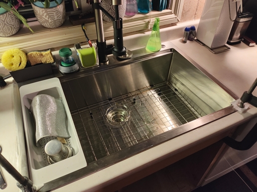 Those square silver scrubbers you have in the sink bin are the bomb! Love those. And nice sink by the way. I have a friend with the same one.