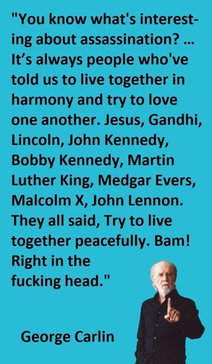 I love Carlin but many of the named were not saying that at all. Neither kennedy. Not malcom x, his whole thing was fight back, and for the record I agree.